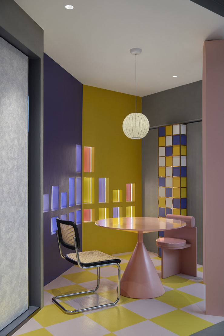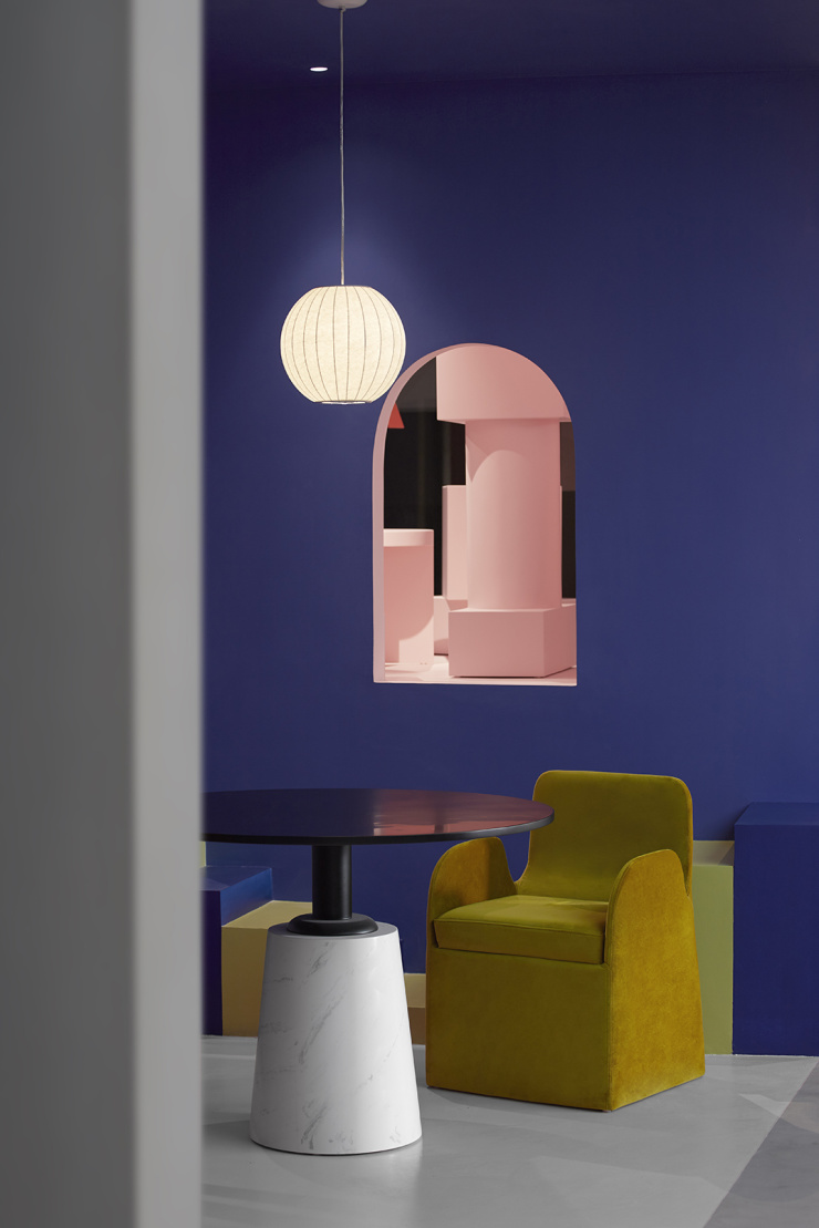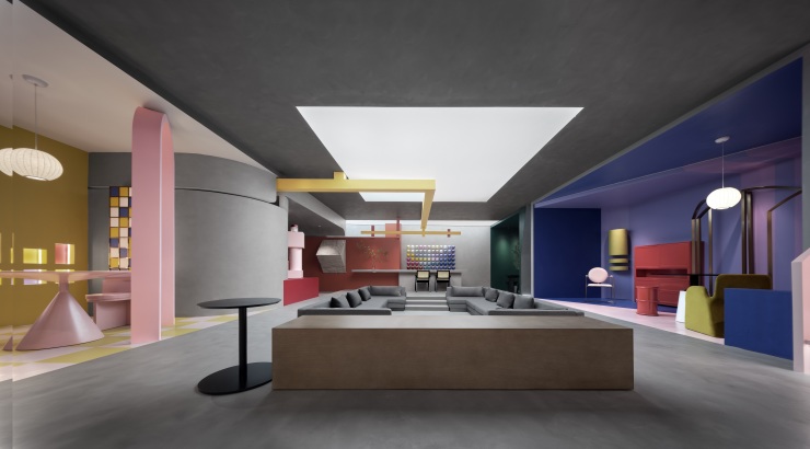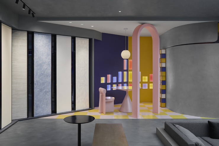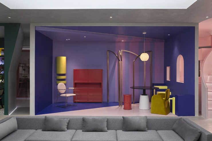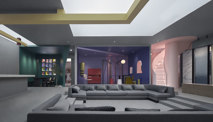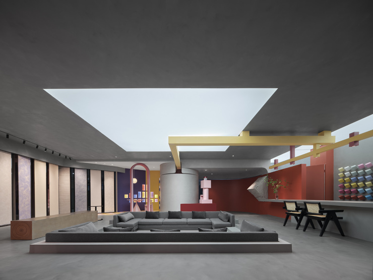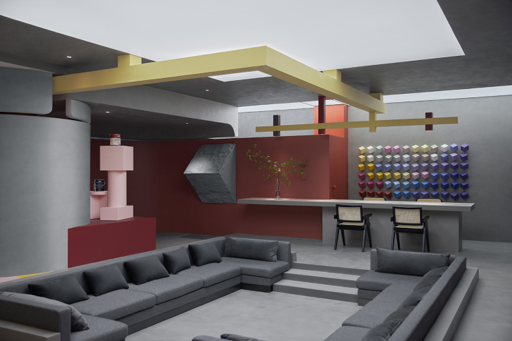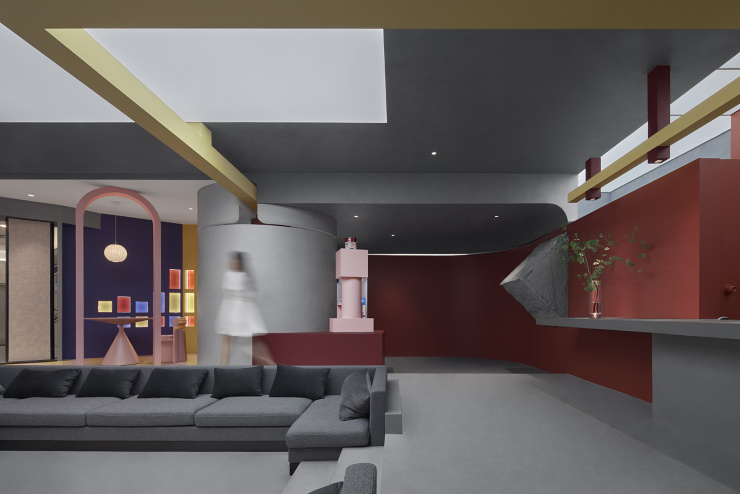 代表春的墨绿、秋的奶酪黄、夏的烈焰红和冬的靛蓝,演绎了一个个独立的场景空间,这里既是洽谈区,又仿佛是发生在体验者面前的一幕幕生活剧。