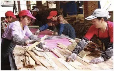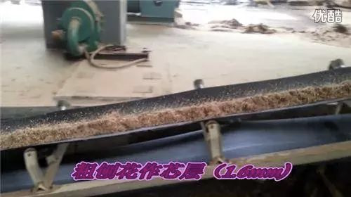 上图:刨花板素板刨花制作过程:先制刨花,刨花要过筛,把细刨花和粗刨花分开来。