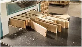 指接好的木条,侧面涂胶,冷压后,锯成标准规格的整张指接板。