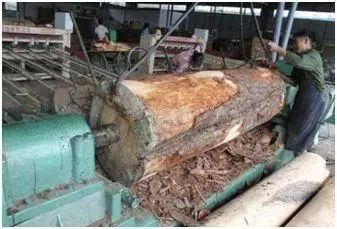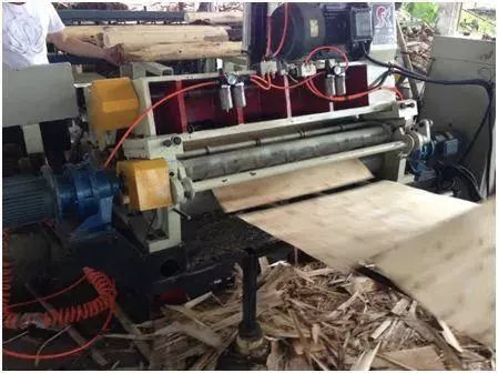 然后像削铅笔一样,被机器削成一片一片的,最薄你们猜能切到多薄,0.3mm,厚的也就8mm,一般2~3mm。先铲掉树皮,