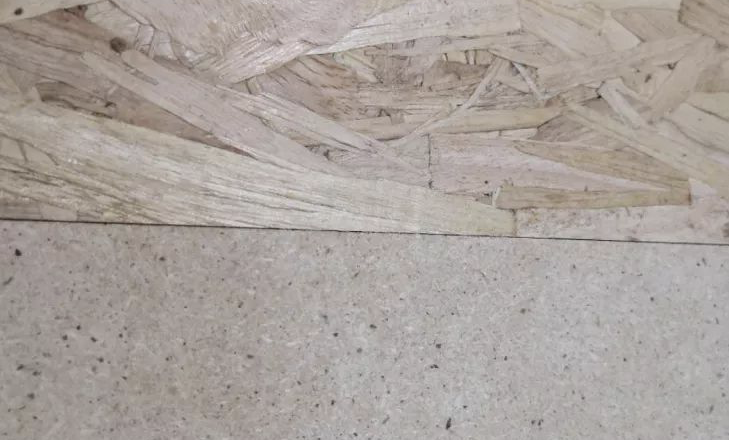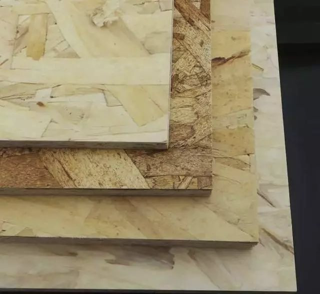 和一般刨花板肉眼可见的明显区别,就是欧松板的刨花都特别大,都是几何形的长片,没有外面细里边粗的区别,都是纯木头片,松木杨木杉木的都有,几种木材混杂起来的也有;铺装刨花的方式也不同,叫定向铺装,上下两层刨花纵行排列,中间层刨花横向排列,然后热压成板,厚度一般20以上。