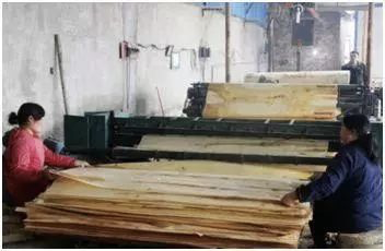 下面是完成的,一棵树旋切完,是一整张,可以像地毯一样卷起来,