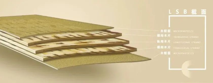 因为三层纵横交错结构,欧松板比一般刨花板材质均匀,韧性好,握钉力强,受潮不易膨胀,国外都用它做房屋结构,结实。但比较厚,占地儿,表面不平整难处理,很少用来打家具。欧松板来到国内,差不多成了大芯板的升级替代品,质量好价格贵,2440*1220mm的怎么也得200元多一张。特别适合做背景墙造型的基层,做完上漆或者其他覆盖,直接裸露的很少,除非追求艺术范儿工业范儿。酒店装修用的多,现在高档家装也有用的,大众用的还是少。八、LSB板(定向结构板)LSB板是OSB板的改良版,是在后者的基础上扬长避短,发扬光大。直至LSB板的出现,OSB板的平整度问题才得到优质解决。下面,请LSB板闪亮登场!哈哈!