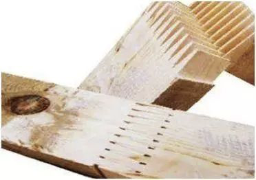 指接板与普通的大芯板比较,需要用梳齿开榫机来开榫。