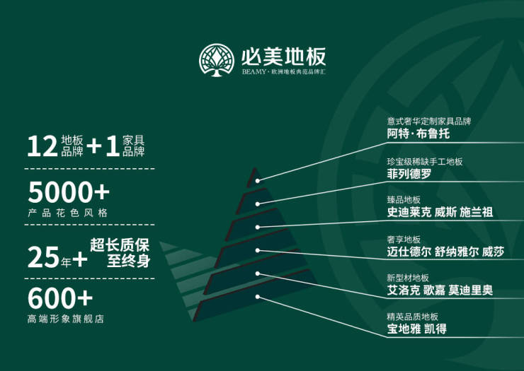 在国际家居的璀璨舞台上,必美更是成为家居界的时尚标杆。必美菲列德罗不仅仅是地板的代名词,更是一种尊享定制的家居艺术品,出于对产品品质的自信,为消费者提供的终身质保服务,真正做到了在木地板行业里唯一敢作出如此承诺的品牌。