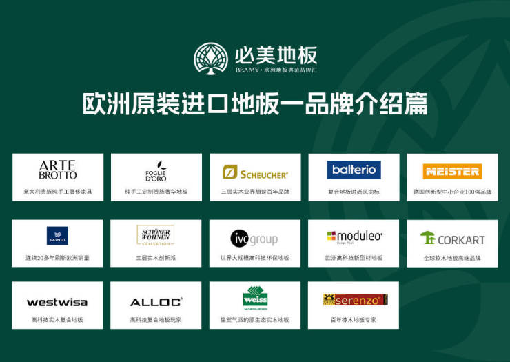 必美地板成立于1996年,引领着中国欧洲进口地板主流化,坚持“健康传递爱”理念,旗下独家代理欧洲12大一线环保地板品牌和1个意大利奢侈家具品牌,汇致力于将欧洲安全环保、自然健康的产品带给无数中国家庭,全球共享必美高奢品质生活幸福家。