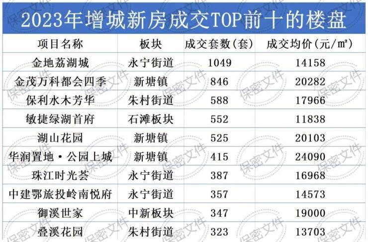 那么增城新房成交量TOP前十的楼盘是哪些呢?