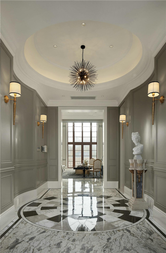 一、豪宅别墅设计装修中,大理石在地面装饰的应用。