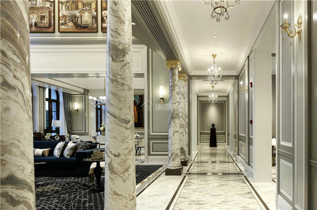 柱子主要是起到承重的作用,突兀的水泥柱破坏了室内装饰的美观性。在豪宅别墅设计装修中,用大理石作为水泥柱子的饰面是其他材料无法比拟的。除了对建筑本身柱体的装饰外,通常也会用包假柱的方式来分割空间,特别是在欧式风格的豪宅别墅设计装饰,更喜欢运用大理石来彰显主人其高贵的身份与豪宅别墅本身的艺术价值。