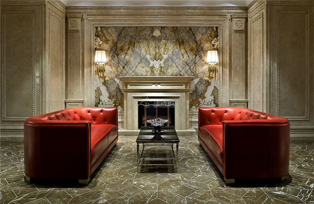 豪宅别墅设计装修中,用大理石作为墙面材料,相对于地面来说更加灵活,如整面墙,或者是壁炉的饰面,以及电视背景墙,可以通过不同的造型,以及空间的落差,使墙面凹凸有致,让空间充满节奏。还可以通过不同的工艺进行加工。可以选择喷砂面,水洗面,仿古面的不同表面类型,其形状也可以选择矩形板,菱形,三角形、圆形、梯形、扇形等异型规格。