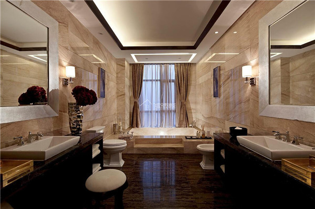 现代的豪宅别墅卫浴间设计,正是更新迭代的时代,大理石的广泛应用更好的体现了主人在生活上的享受。