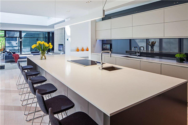 橱柜的台面和墙面的混合使用,光洁光滑,质感细腻,给人干净大气、宽敞明亮的感觉。在厨房,这是瓷砖和木板等材料所不能带来的效果。用天然大理石打造厨房更具简约时尚,也能够满足恶劣环境的需求。