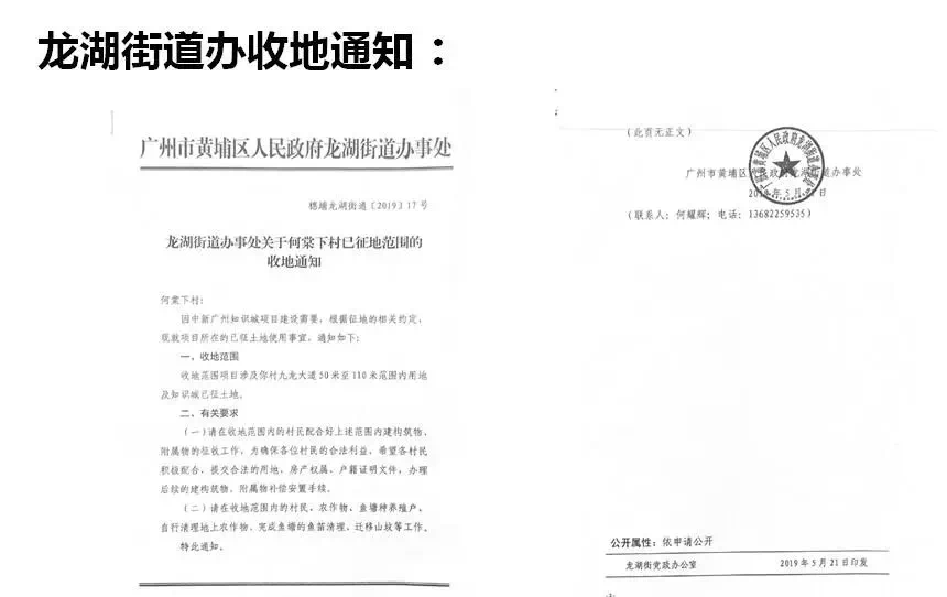 根据通知,本次收地范围项目涉及何棠下村九龙大道50米至110米范围内用地及知识城已征土地。