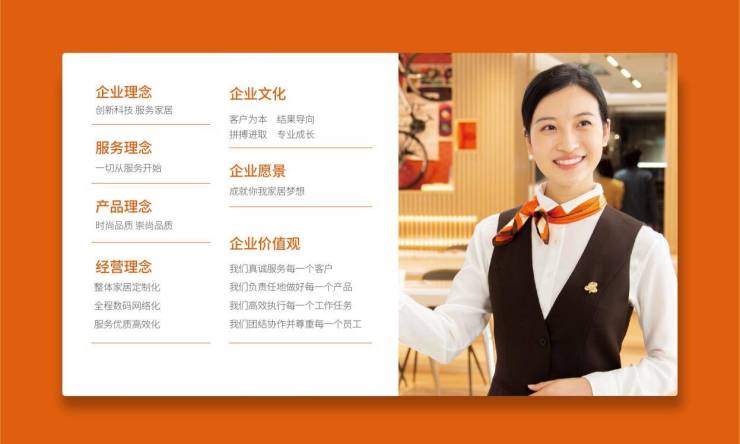 依托自身IT技术、创新能力、柔性化生产工艺、云计算和大数据实践,成为中国工业4.0的样本;应用“C2B+O2O”创新商业模式,迅速发展成为现代家居服务品牌。