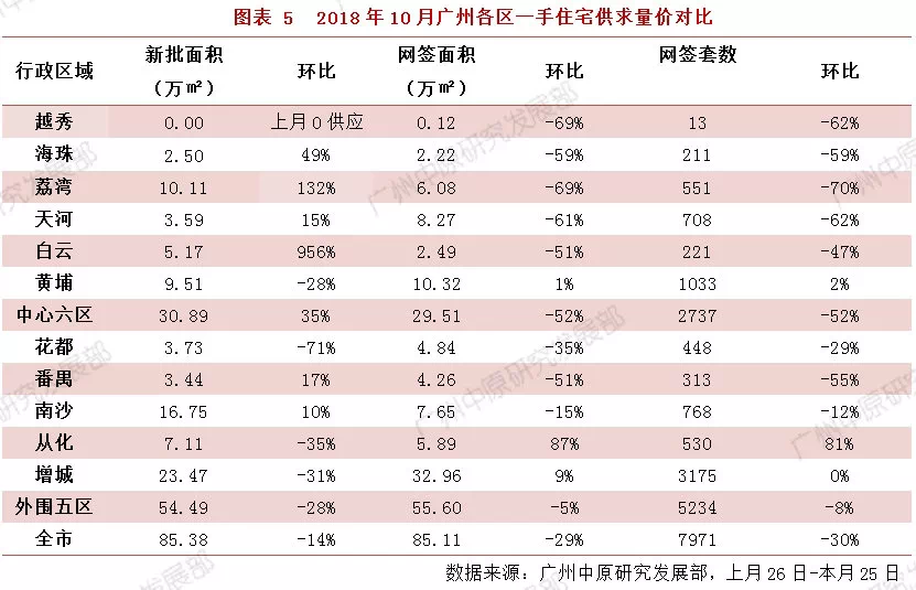 此外,由于中心区天河、荔湾、海珠等区处理积压网签数量减少,导致本月相关区域网签呈现50%以上的下滑。