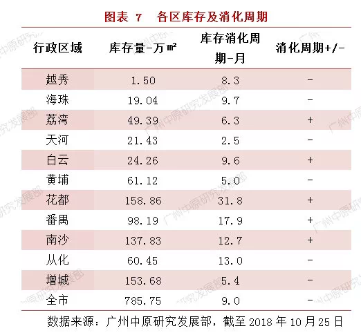 从各区消化周期来看,天河消化周期不足3个月。