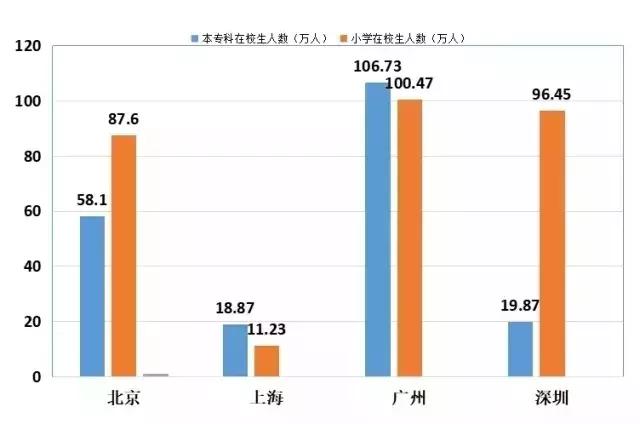 其实,在人口迁徙大背景下,广州比北上深还略胜一筹!在2017年,广州创造了两项记录,大学生与小学生在校人数均突破100万人,均居北上广深之首!所有在校学生全部加起来,广州共约358.2万人!根据人口流向、产业和资金集聚的方向,相信未来,广州的发展潜力不会让你失望。