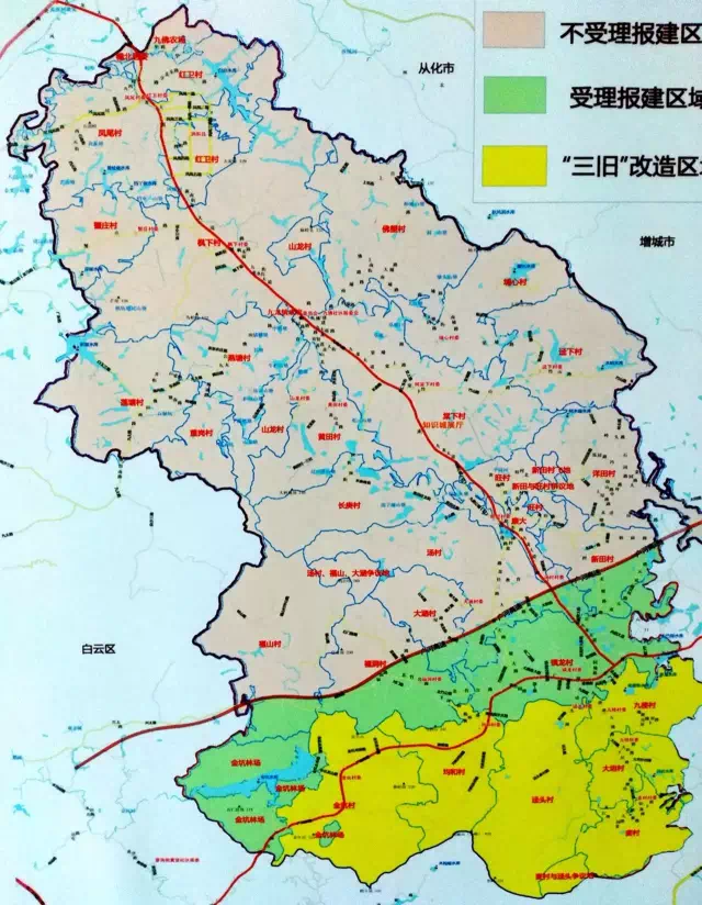 (一)城边村(全面改造型):指因知识城主城区建设而需要拆迁的村庄,包括:枫下村、山龙村、重岗村、埔心村、燕塘村、黄田村、何棠下村、长庚村八个。此类村庄村民住宅建设适用征地拆迁方式并依照相关法律法规和有关文件规定。