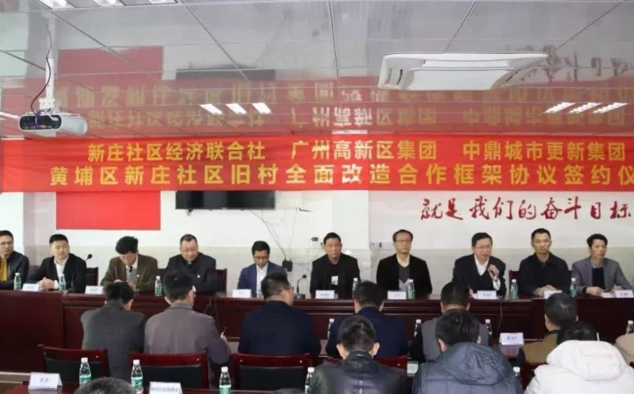 2019年1月23日下午,广州高新区投资集团下属公司广州永和建设发展有限公司与黄埔区永和街新庄社区经济联合社、中鼎城市更新集团,在新庄社区经济联合社签订了旧村全面改造合作框架协议。