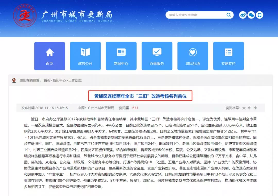 而在这么多个区的旧改中,黄埔区的表现可以称赞。据悉,在“三旧”改造考核,黄埔区以排名排名前列评定为优秀,连续两年位列全市首位。