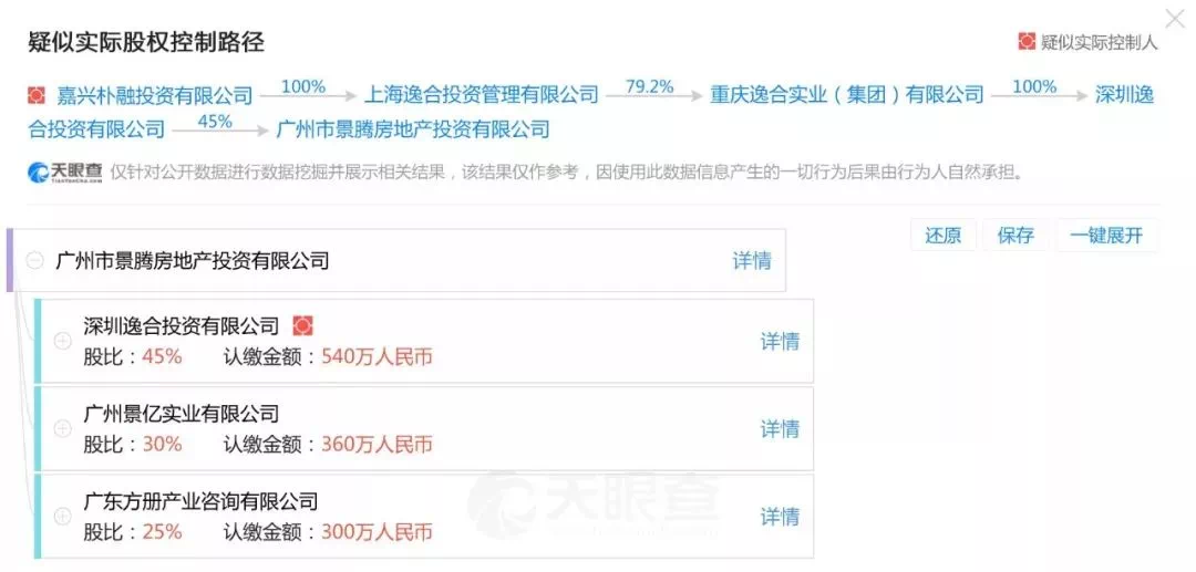 而景腾公司背后的股东为嘉兴朴融投资有限公司,注册资本20个亿,实际控制192家公司,当中包括上海逸合投资管理有限公司。