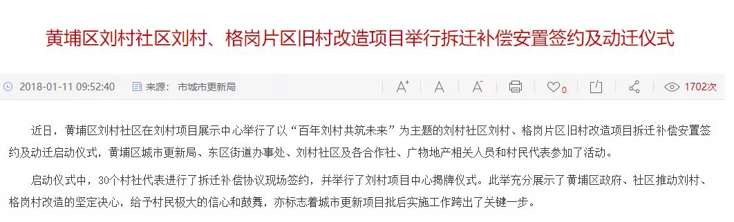 2018年9月30日,《宏岗旧村改造补偿安置方案》表决率突破80%,创下旧改表决较快纪录。