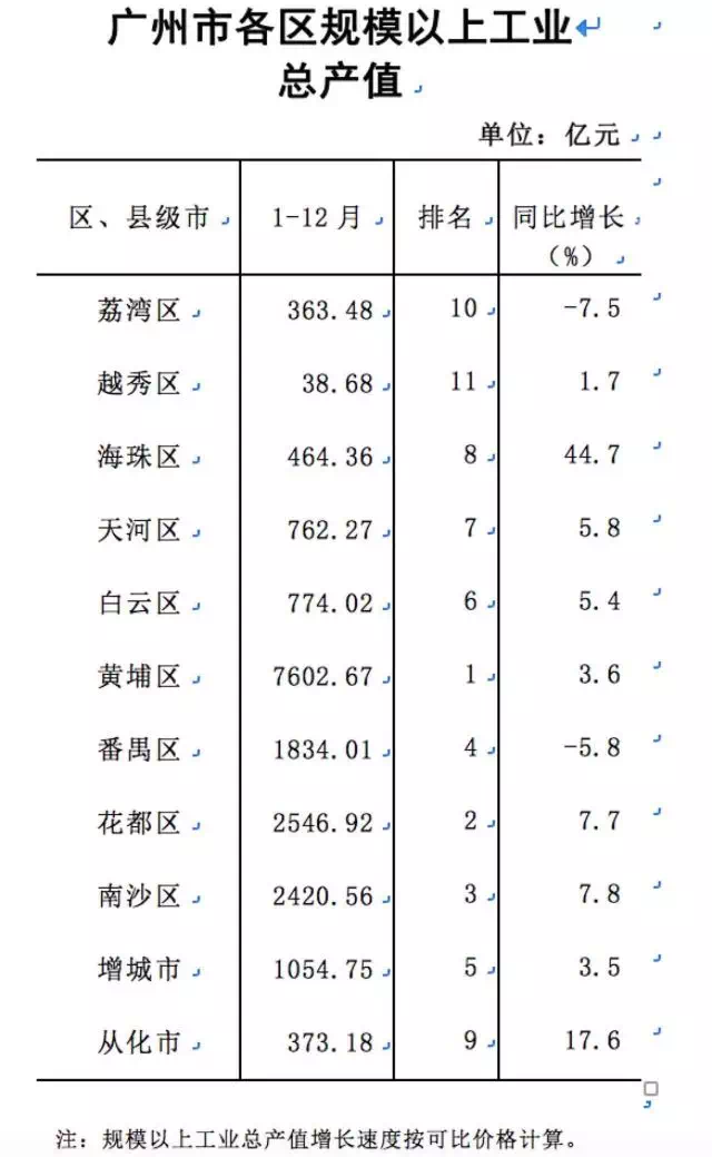 除了各区的GDP数据之外,南沙区政府官网还公布了广州市各区规模以上工业总产值数据。