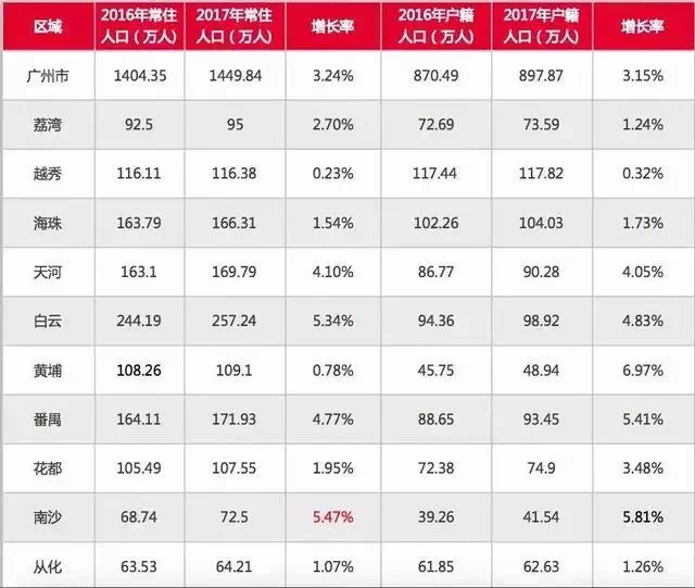 数据显示,广州常住人口最多的区是白云区,为271.43万人。黄埔区常住人口111.41万,比2017年增加2.31万人,增速2.11%,而2017年同期增速为0.78%;户籍人口52.76万,比2017年增加3.76万人,增速7.7%。