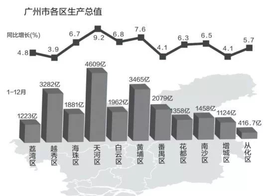 增速相对较低的三个区是越秀(增长3.9%),番禺(增长4.1%),增城(增长4.1%)。