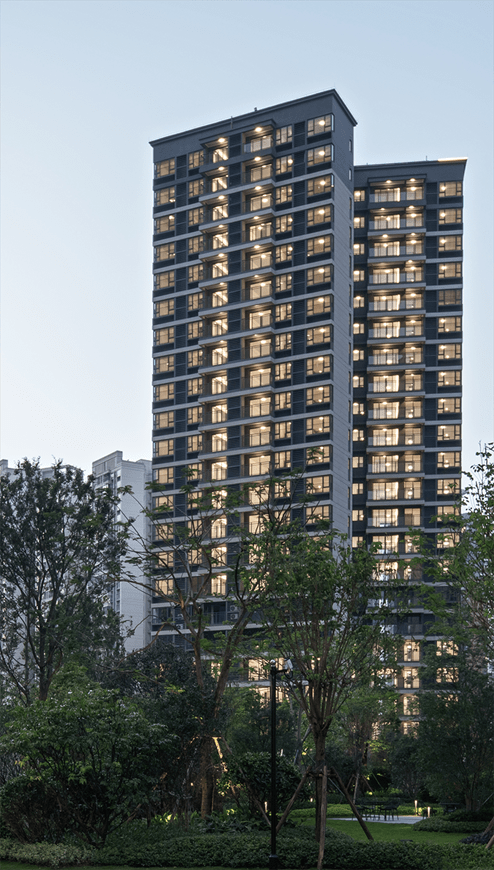精筑粤府系人居精髓,借鉴岭南传统三段式设计,采用大面玻璃材质的水晶天幕外立面,提升窗地比,塑造出建筑的肌理美感,尽显简约、大气、通透的轻奢气质。