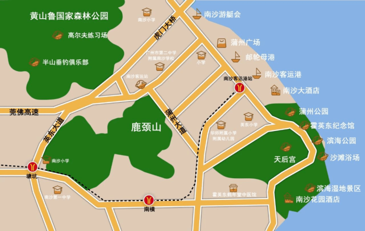 作为南沙的富人区,板块内汇聚了几乎整个南沙高端配套,如南沙客运港、邮轮母港、南沙游艇会、高尔夫球场、南沙天后宫、南沙大酒店、世贸中心大厦等,且基本都落地并运营成熟。