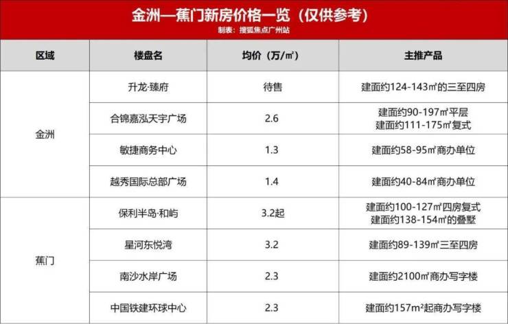 聚焦到板块内的新房,由于金洲-蕉门板块房地产开发较早,近年供地又逐渐减少,新房供应放缓,目前在售新盘不多,主要以商业写字楼和大面积产品为主。