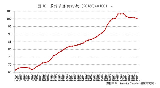 从历史数据来看,从2007年四季度至2017年三季度,除了个别时点的微调外,多伦多房价指数基本持续上升,从2007年四季度的66.5上涨到2017年三季度的103.2,上涨55.2%。其中重要因素之一,包括华人在内的海外资金流入楼市较多。
