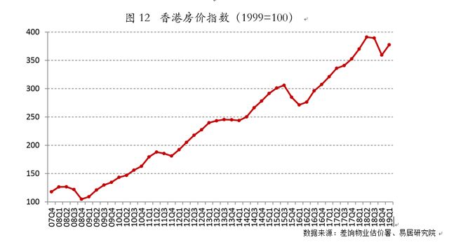 十年来香港房地产市场持续走高主要有4个因素:1、金融环境宽松,利率较低使得投资成本较低;2、看好香港经济和房地产的岛外资金大量涌入;3、内地资本外流,人民币进入香港方便;4、地少人多,住房供不应求。但种种迹象已表明,目前香港楼市存在泡沫,香港政府也意识到了这一点,2016年以来多次出台调控政策,并在2017年5月再加码,针对有多笔按揭贷款以及主要收入来自外地的购房者提高了购房门槛,以此来调控楼市。2018年6月份进一步出台对一手住房征收空置税等六项调控政策。2018年9月底,美联储加息,香港金管局紧跟上调利率,香港多间银行相继上调最优惠利率,为12年来首次,代表过去逾10年的超低息环境宣告结束。预计2019年二季度香港楼市不会大幅上行,反弹将趋缓。