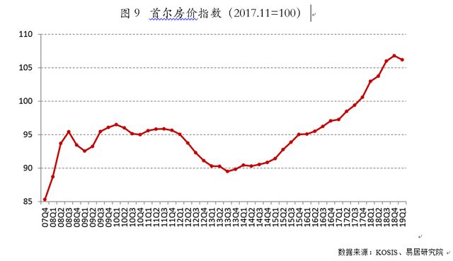 2019年一季度,首尔房价指数小幅下跌至106.2,此前已连续18个季度上涨。这主要是由于低利率和购房限制较宽松等原因,根据韩国银行(央行)经济统计系统发布的数据,截至2018年10月,韩国首尔市房价上涨率创下了近十年来的较高值。为了抑制过热的房地产市场,韩国政府在2018年9月13日宣布出台严厉的房地产新政。另外,2017年11月底,韩国六年来首次加息,成为美联储加息后亚洲排名前列个加息的国家,2018年11月底韩国再次加息25个基点,货币政策的收紧抑制了房价的过快上涨。