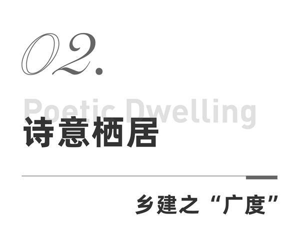 “诗意栖居”主题活动在社会与设计层面具有双重现实意义:首先,它以设计回应国家乡村振兴战略,以一系列乡村建筑实践呈报“建设宜居宜业和美乡村”的高度、广度与深度;其次,乡村规划与乡村建设是近年来设计界所面临的重要课题之一,是建筑师绕不开的时代主题。建筑师们在乡建事业中的在地实践和思考,正在构建中国现代建筑在当今这个变革时代中的整体形象,以及存在于表层领域之下的深层思想。