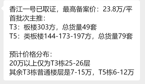 另一方面,有消息称,号称番禺新晋顶豪项目的香江1号传出了最新的备案价: