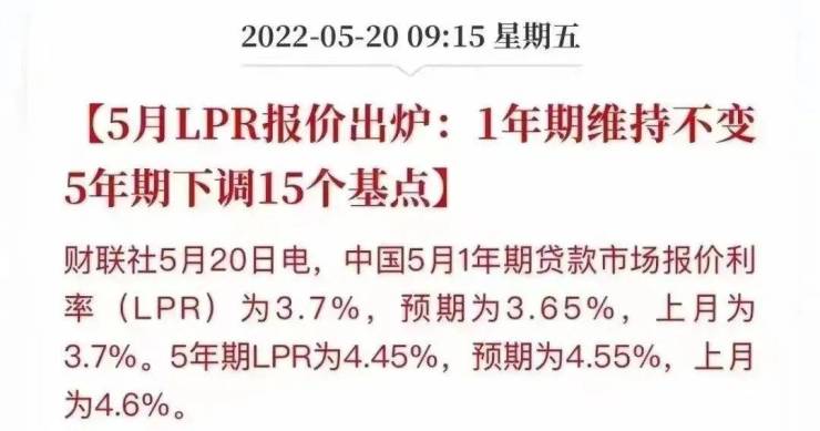 昨日,央行公布了5月LPR报价,其中5年期下调15个基点,1年期不变。