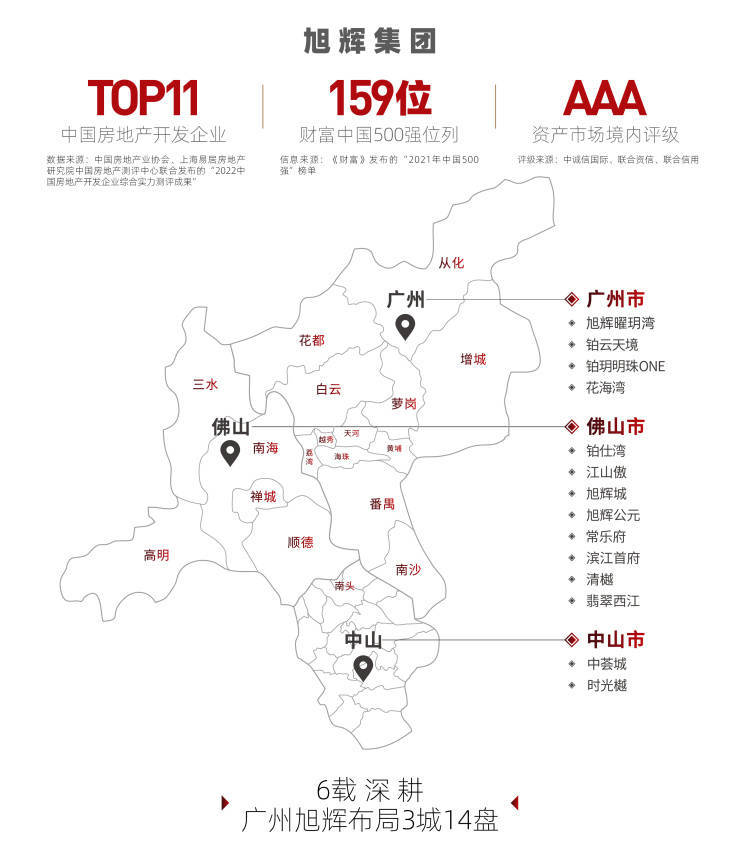 实力和口碑是房企较好的名片。旭辉集团成立于2000年,历经20余年发展,目前综合实力位列中国房地产开发企业第11位,位列财富中国500强第159位,总资产规模达超4400亿,净资产超970亿,地产开发业务遍布中国及海外近百座城市,累计开发项目超600个,服务逾50万业主,资本市场境内外评级均为稳定级。