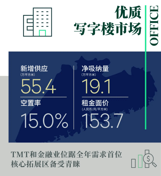 近期政府发布《广州市促进外资高质量发展若干措施》,对外商投资提供支持和奖励措施。我们相信,在政府积极的招商引资及业主愈发具有竞争力的租赁条款等因素推动下,优质写字楼的租赁成交将有所攀升。”
