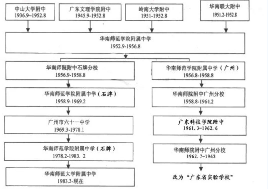 首先,最早的“华附”其实不是现在天河五山,是在越秀区,并由四所学校(岭南大学附中、中山大学附中、广东文理学院附中和华南联合大学附中)联合举办而成。