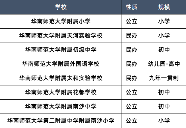 目前,由该校教育集团旗下的院校在广州只有三所:华师附中、华师附中番禺学校、华附新世界学校。▼目前已经开学的“华附”系学校▼