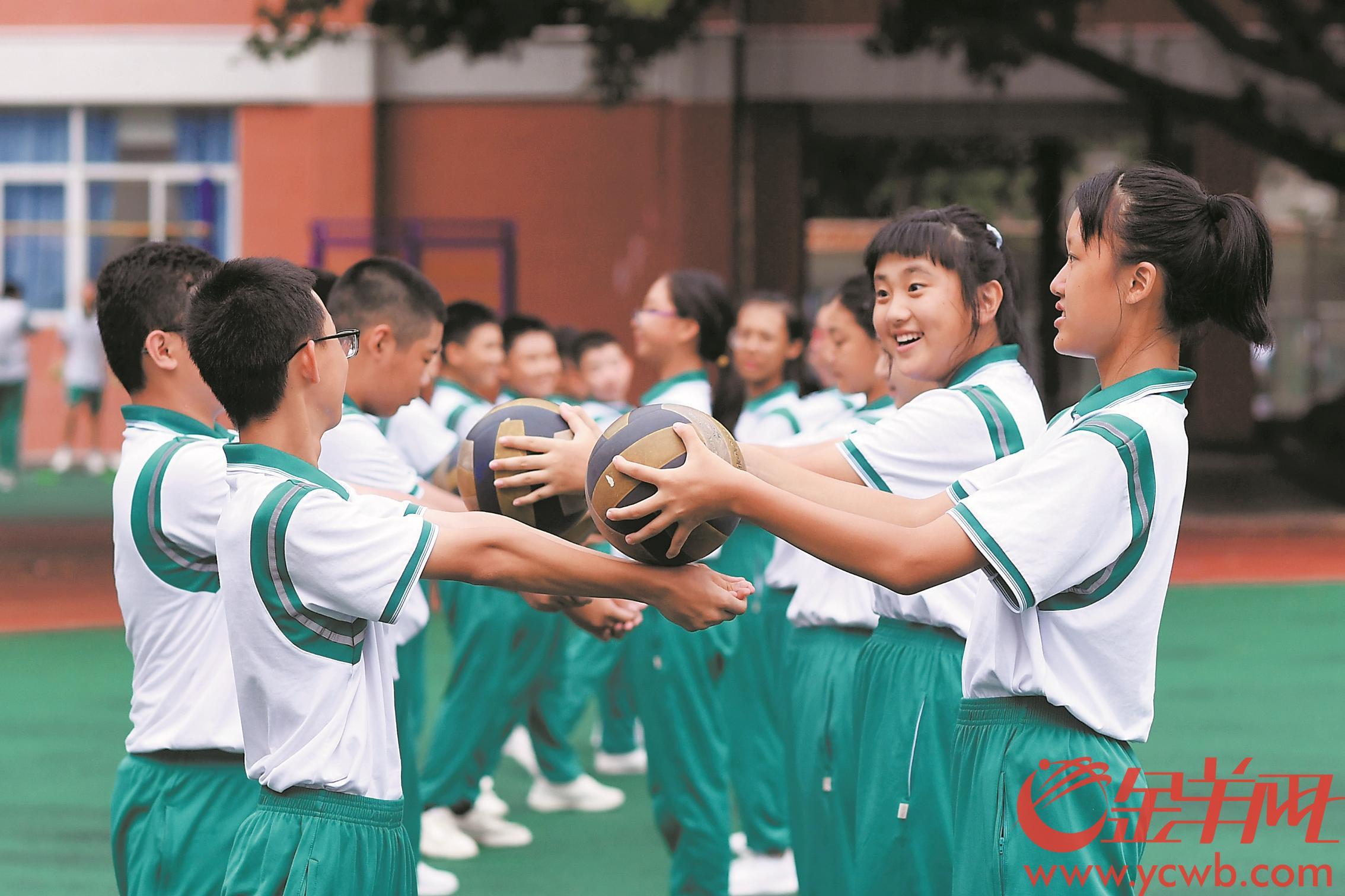 2021年9月6日,广州市绿翠现代实验学校初中部学生在学习打排球