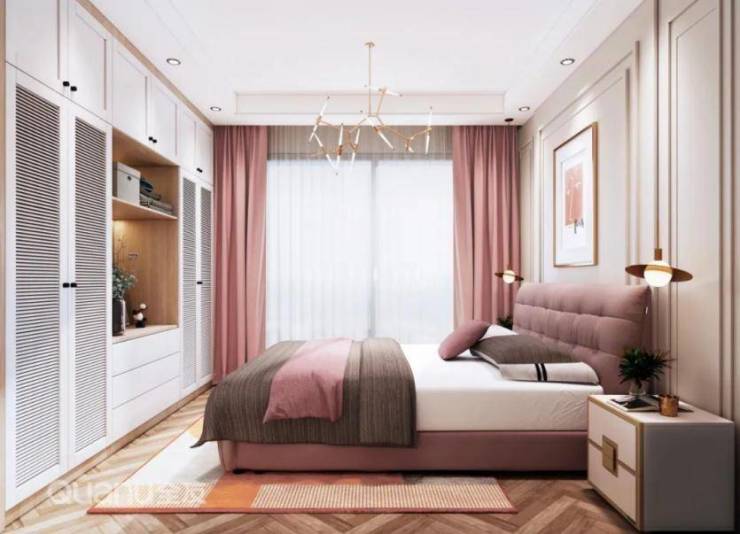 桥头柜其实就是我们常说的床头壁柜,背景墙连接衣柜并定制吊柜,然后将床头内嵌,两面墙都被充分利用起来,大大提升了卧室的储物空间。