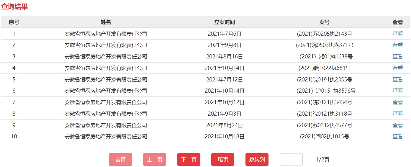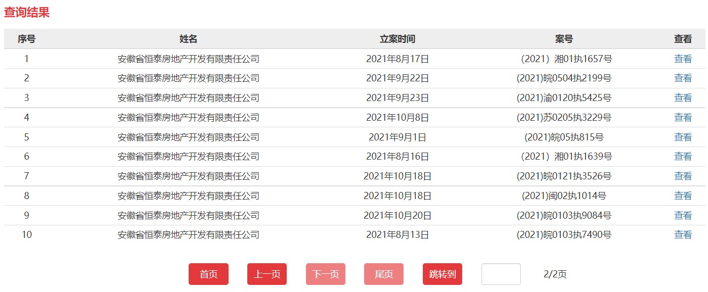 中国执行信息公开网显示,至今年10月18日,安徽省恒泰房地产开发有限责任公司被各地法院列为执行人的记录已达20余次,其中,两次列为失信被执行人。