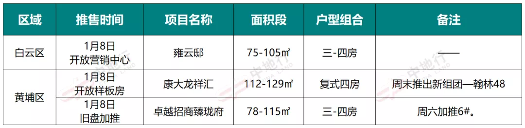 据中地行不完全统计,本周末(2022年01月08日-2021年01月09日),广州全市3项目有活动,其中1项目开放营销中心,1项目开放样板间,1项目旧盘加推。