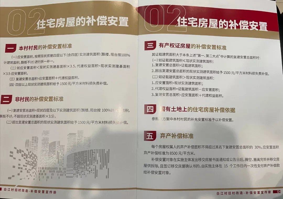 近日(9月16日),白江村旧村改造项目部分别在东宁、南顺、田吓、元会社设置了宣传点,并发放《白江村旧村改造补偿安置宣传册》。