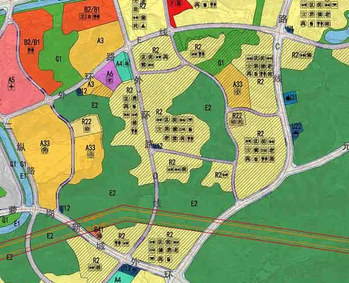 关键的是,现行控规中的粉色“教育科研地兼容商业商务地块”全部消失,调整为黄色二类居住用地。