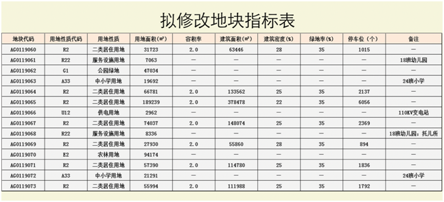 地块总体定位为生态宜居社区,功能以居住和公共服务设施为主。建设总量由131万平方米调减为101万平方米。