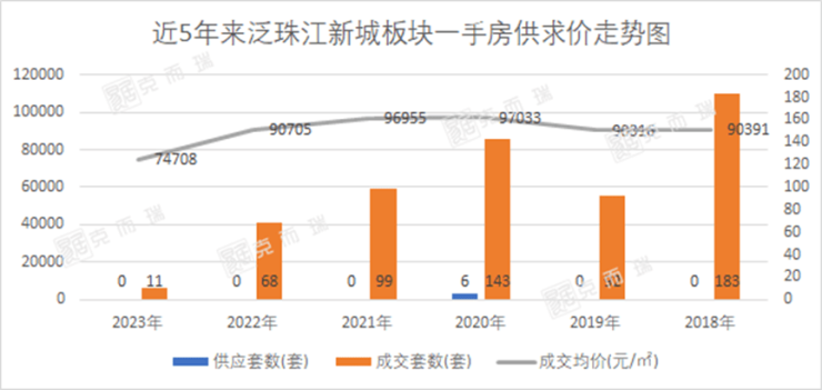克而瑞数据显示,近5年来,整个泛珠江新城板块仅在2020年有6套新房供应,还是来自广州东站片区的峻林项目,珠江新城CBD片区多年处于住宅0供应的状态。